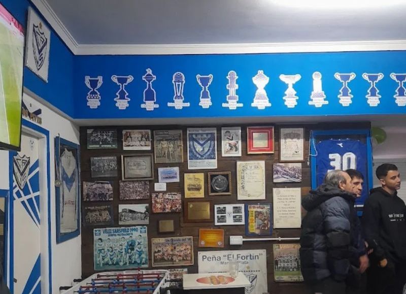 Integrantes de la peña de Club Atlético Vélez Sarsfield en Mar del Plata, durante uno de sus encuentros habituales.